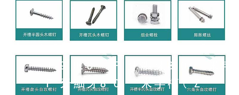 (鐵板牙自攻螺絲) B-2: Plastic Tapping Screw. (塑膠用,自攻螺絲) C: Wooden Screw : 木工螺絲 D: Drywall Screw :水泥墻螺絲 E: Self Drilling Screws鉆尾螺絲(不銹鋼鉆尾螺絲,復合材料鉆尾螺絲) F:膨脹螺絲,四片膨脹螺絲又