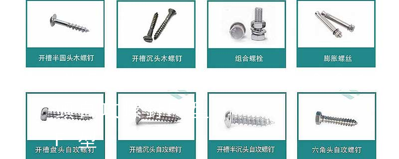 沉頭內六角螺釘(平杯)、半圓頭內六角螺釘(圓杯)、十字槽盤頭機螺釘、十字槽沉頭機螺釘、十字槽大扁頭機螺釘、十字槽盤頭自攻釘、十字槽沉頭自攻釘、十字槽大扁頭自攻釘、全牙絲桿(牙條)、六角螺母、法蘭
