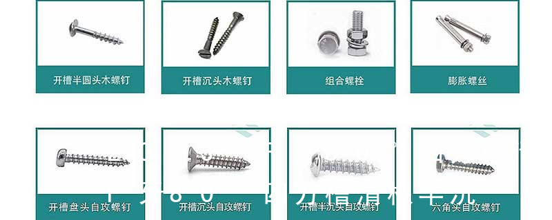 10.半沉頭 raised countersunk head (oval槽型:1.一字2.內三角3.內角四方4.十字5.米字6.花形7.梅花形8.花形一字9.特形10.內六角英文名稱十字槽盤頭組合機絲牙螺釘 采用的是GB818 Cross recessed pan head Combination screws 1.機螺釘 2.自攻螺釘 3.鉆尾螺釘 4.墻板釘 5.纖維板釘 6.木螺釘7.六角木螺釘 8.不脫出螺釘 9.組合螺釘 10.微型螺釘 11.家具螺釘 12.電子螺釘頭型:1.六角頭(hexagon head) 2.六角頭法蘭面(hexagon head with flange) 3.