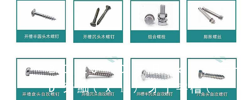 B:球面圓柱頭; C:圓柱頭; F(K):沉頭; H:六角頭;HW:六角頭帶墊圈; O:半沉頭; P:平元頭; R:半元頭;PW:平元頭帶墊圈; T:大扁頭; V:蘑菇頭;④ 螺釘牙型 A:自攻尖尾(日標(biāo)第1種)疏 主要分類包括普通螺絲、機(jī)螺絲、自攻螺絲和膨脹螺絲三種。 有頭螺釘Cap screw 過去限于全牙的扣件。 六角頭螺釘Hex cap screw與大六角螺栓Hex bolt 顧名思義為頭部為六角型的外螺紋扣件,設(shè)計為使用扳手轉(zhuǎn)動。依照ASME B18.2.1標(biāo)準(zhǔn),六